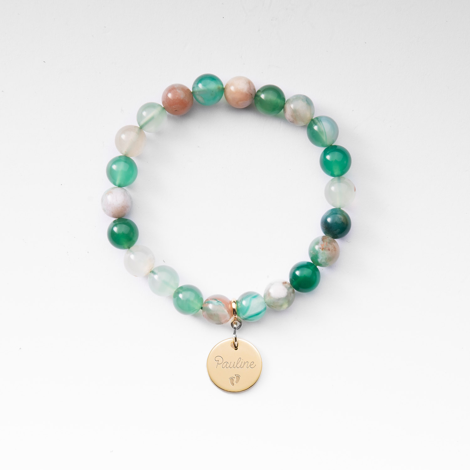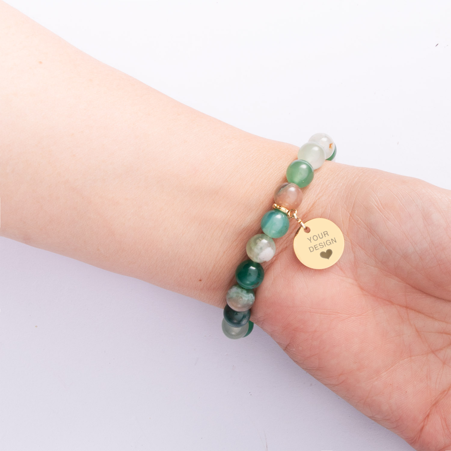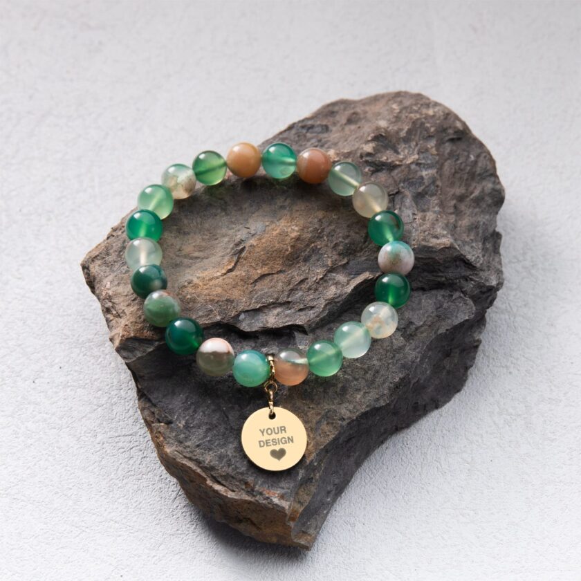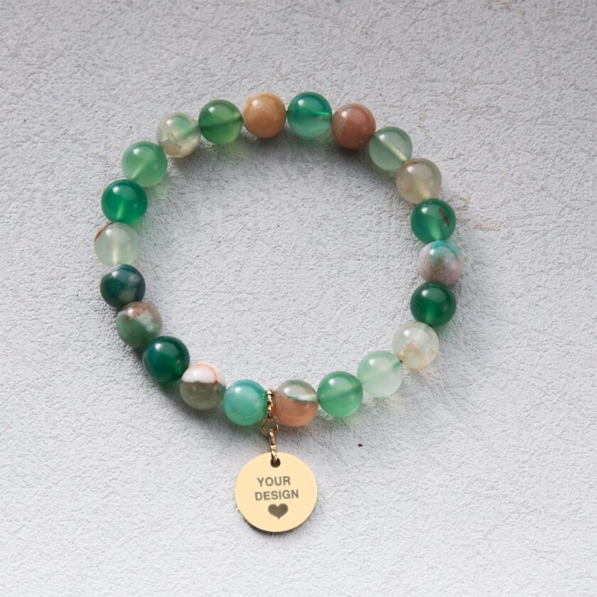 Green Blossom Agate Bracelet with Engravable Disc – Serene Growth