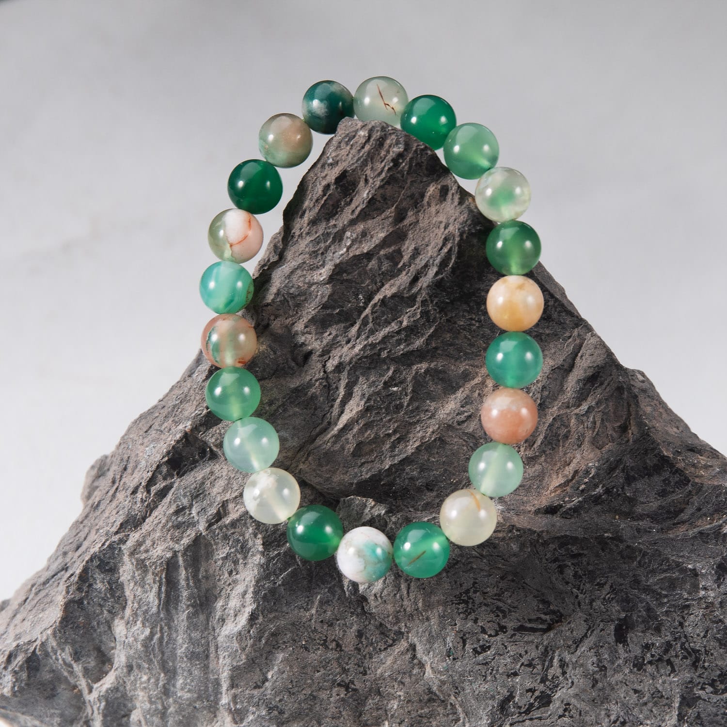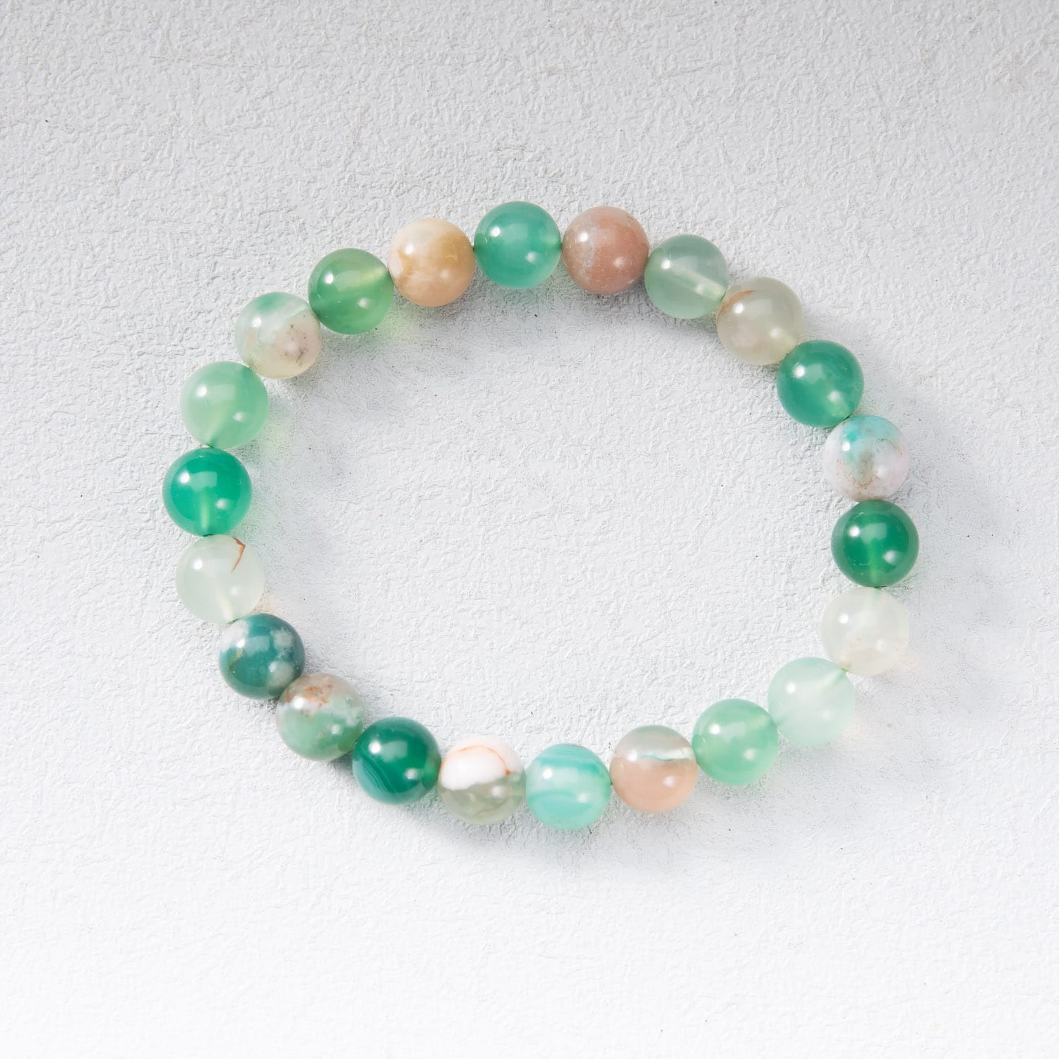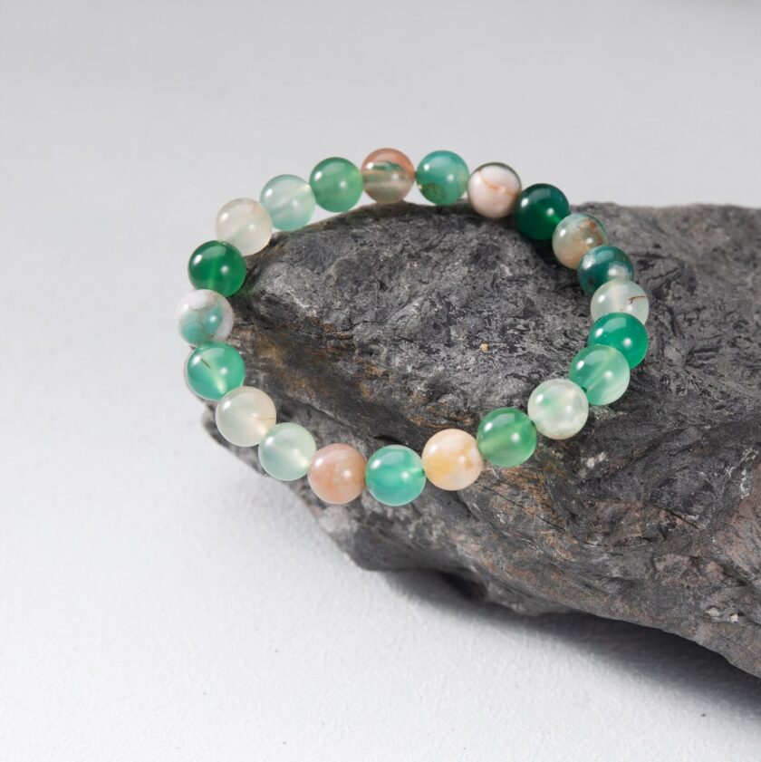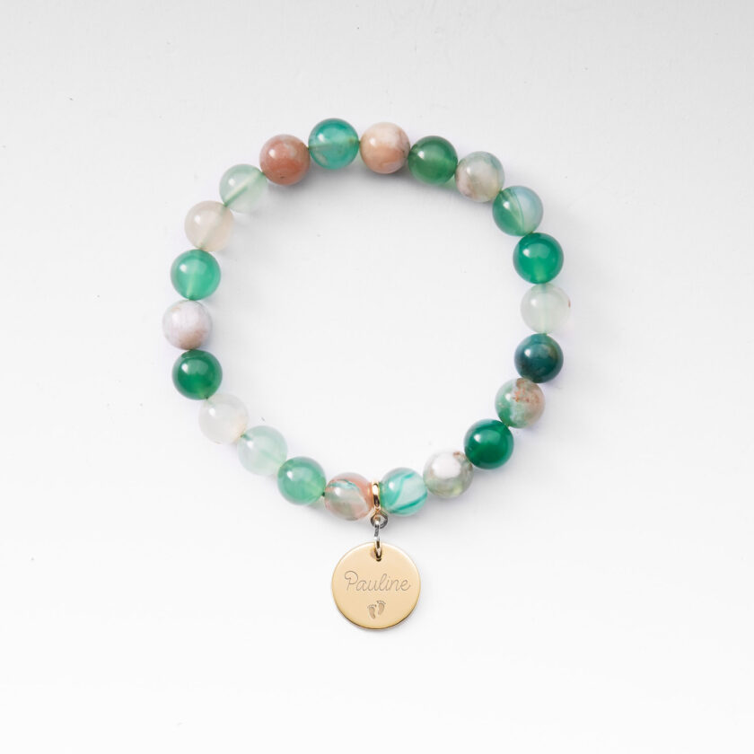 Green Blossom Agate Bracelet with Engravable Disc – Serene Growth